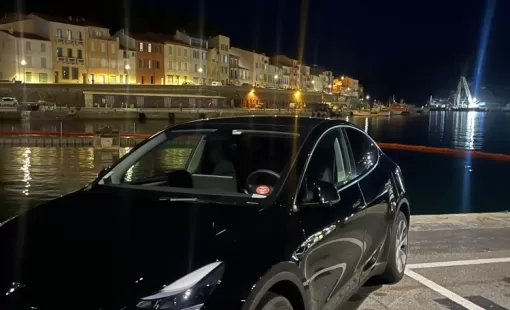 À bord de la Tesla modèle Y, votre chauffeur de VTC à Perpignan…