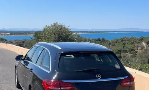 À bord de la Mercedes, votre chauffeur de VTC à Perpignan vous…